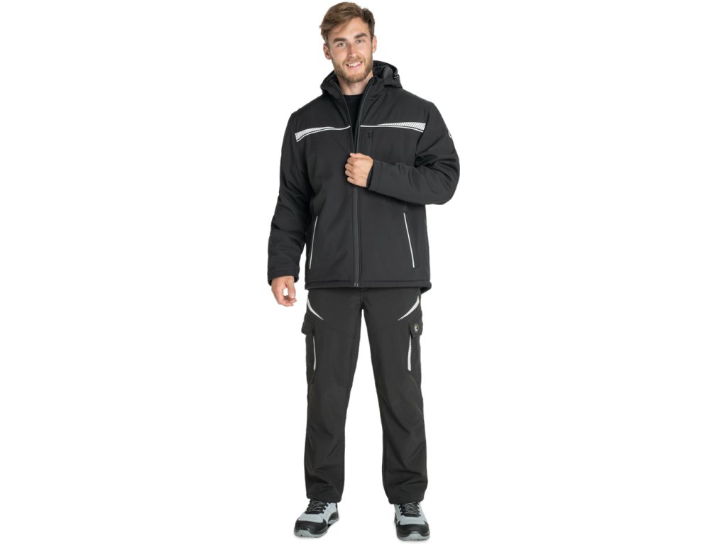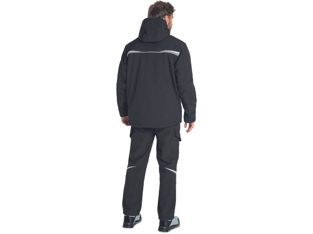 • zimní softshellová bunda se zateplenou kapucí a zapínáním na zip • dvě boční kapsy na zip • jedna levá náprsní kapsa na zip • jedna vnitřní náprsní kapsa • elastické manžety rukávů • ventilace na zip v podpaží • reflexní detaily a lemování