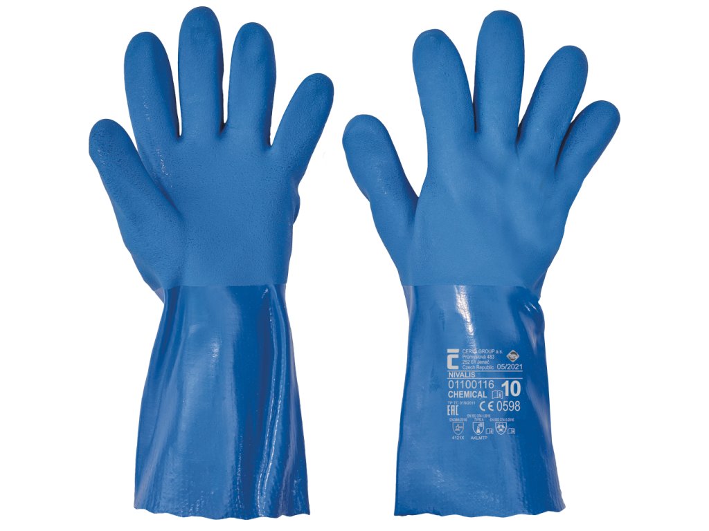 • rukavice z PVC odolné chemikáliím s bavlněnou podšívkou a speciální povrchovou úpravou • vynikající ergonomie a úchopové vlastnosti • lehce nasaditelné