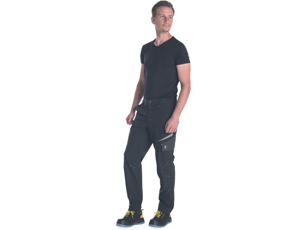 • pánské pracovní kalhoty s elastickým pasem • strečový lehký materiál s pohodlným střihem • 2 boční kapsy • 2 stehenní kapsy • 2 zadní kapsy • reflexní detaily • nastavitelná délka nohavic