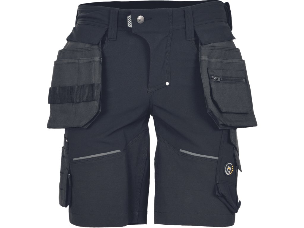 • pánské pracovní šortky s pružným pasem doplněné o 2 boční odepínatelné, multifunkční "létající" kapsy • 2 zadní kapsy se zapínáním na suchý zip • 2 multifunkční stehenní kapsy • elastický inovativní materiál TrifibetexPRO® • odolné trojité prošití nohavic a sedu • reflexní prvky v barevném odstínu