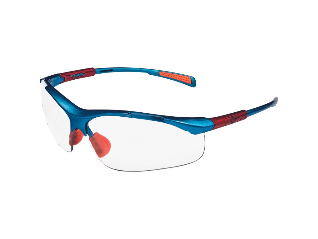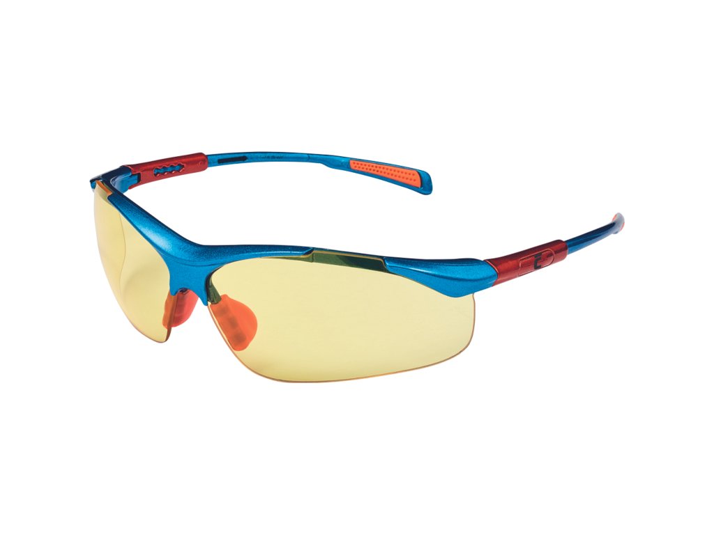 Brýle sportovního vzhledu optické třídy 1 s polykarbonátovým zorníkem s úpravou proti poškrábání a orosení (třída F dle normy EN 166), ochranou proti nárazu s malou energií a nastavitelnou délkou stranic. Žlutý zorník má ochranný filtr proti UV záření dle normy EN 170, šedý a zrcadlový zorník má ochranný protisluneční filtr dle normy EN 172.