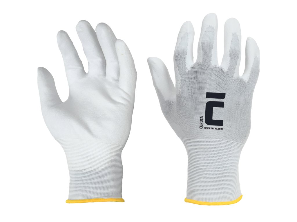 • možnost ovládat dotykové obrazovky • pocit „druhé kůže“ • tenké prodyšné nylonové rukavice máčené v PU • hustota úpletu 18 GG
