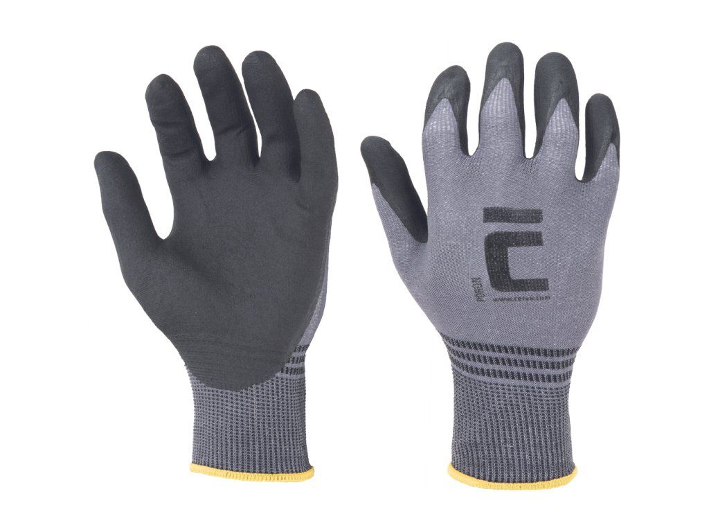 • bezešvé rukavice z nylonu a spandexu se speciálním pěnovým nitrilovým povrstvením zajišťující rukavici dlouhou životnost • vynikající úchop za sucha i v olejnatém prostředí • možnost ovládat dotykové obrazovky • prodyšnost • při výrobě nižší spotřeba o 30 % méně energie a o 63 % méně emisí CO2, než při výrobě běžných bezešvých rukavic máčených v nitrilu • výtečná ochrana vůči oděru, výdrž přes 19.500 cyklů • hustota úpletu 15 GG
