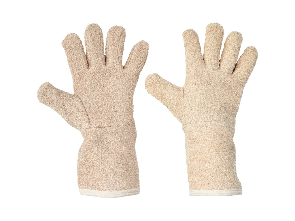 Rukavice s manžetou šité ze silné froté bavlny, v celkové délce 35 cm.